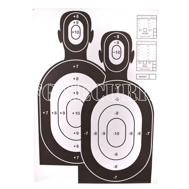 Papierový terč so siluetou dvoch postáv, určený ako aj pre profesionálov, tak aj amatérskych užívateľov všetkých druhov zbraní slúžiacich na športovú streľbu ako aj sebaobranu.Terč dve postavy 1 ksRozmer: 84 x 60 cmMateriál: papier