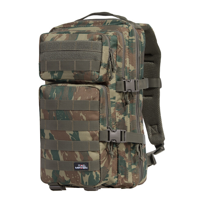 Assault malý batoh je vybavený spojovacím a nosným systémom molle a štyrmi priehradkami. Dve predné, jednu veľkú hlavnú a jednu vedľajšiu. Batoh má rozmery 45 x 32 x 24 cm a objem 35 litrov. Na zadnej strane batohu je skrytá piata vonkajšia veľká priehradka na suchý zips pre nosenie vodného vaku. Vo vnútri batohu v hlavnej priehradke je istiaca sieťka na doklady a pod. a ďalšia vnútorná priehradka na zips. Množstvo ďalších bočných priehradok a nesmie chýbať ani organizér pier. Veľmi zaujímavá farba batohu v nevšednom maskáči.Batoh Assault Small Pentagon 35 l, camo100 % Polyester 600DSBS® Zipsy420HD popruhyPopruhové pásyNastaviteľný pás na hrudiKompresné sťahovacie popruhyHmotnosť: 1.14 kg (2.5 lbs)Batoh Assault Small Pentagon je vyrobený z pevného 100 % polyestéru typu 600D. Je doplnený kompresnými pásmi, ktoré sťahujú batožinu vo vnútri a taktiež nastaviteľnými a odopínacími istiacimi bedrovými pásmi a pásom hrude nosiča. O pohodlie sa stará aj priedušná a mäkká polstrovaná zadná časť batohu, ako aj ramenné popruhy. Tento batoh je vybavený patentovanými SBS® zipsami. Praktické D-krúžky na zavesenie fľaše, kľúčov alebo iného príslušenstva sú integrované na ramenných popruhoch.Navyše je vybavený taktickým molle systémom (prešívané nosné nylonové pásy) pre zavesenie ďalšieho príslušenstva ako fliaš na vodu, náradia a iných molle doplnkov. Tento batoh je stvorený na turistiku, Vaše športové aktivity, do práce, alebo len tak do mesta pre Vaše denné aktivity.Batoh Assault Small Pentagon 35 l, camoMateriál: 100 % Polyester 600DObjem: 35 litrovRozmery: 45 x 32 x 24 cm (výška x šírka x hĺbka)Molle SystemSťahovacie pásyPolstrovaná zadná časť Polstrované ramenné popruhy typ 420HDD-krúžky na kľúčeSBS® ZipsyNastaviteľný pás na hrudiKompresné sťahovacie popruhy na batožinuHmotnosť: 1.14 kg (2.5 lbs)Farba: maskáčVýrobca: PentagonPOKYNY PRE STAROSTLIVOSŤ O BATOHYPo použití batohu najmä v exteriéri je potrebné skontrolovať, či nie je vlhký. Ak je vlhký alebo mokrý, treba ho nechať dôkladne vysušiť. Nesušte na priamom a ostrom slnku, mohlo by to spôsobiť zmenu farebného odtieňu, alebo spôsobiť iné poškodenie materiálu.Skladovanie vlhkého (nevysušeného) batohu môže viesť k vzniku plesní na povrchu a aj vo vnútri batohu.Väčšina batohov nie je určená na pranie v práčke a sušenie v sušičke. Sledujte však symboly na etiketách / štítkoch, ktoré symbolizujú správnu starostlivosť.V prípade znečistenia povrchu batohu použite jemné mydlo, jemnú handričku a teplú vodu.Občas kontrolujte zipsy, ak by boli zanesené napr. prachom, vhodným spôsobom vyčistite.