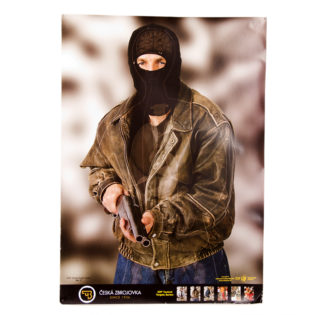 Pre realizáciu samotných streleckých cvičení priamo na strelnici je jednou z hlavných pomôcok terčové zariadenie. Dobre urobený terč nielenže zvyšuje atraktivitu výcviku a tým umocňuje motiváciu prítomných účastníkov, ale vedie aj k potrebnej presnosti.Taktické terče majú tieto prednosti:farebné prevedenie a čo najviac reálna podobadve zásahové zóny, vitálna stredná "smrteľného zásahu", okrajovejšia "zraňujúca", mimo toho bolo treba vyznačiť tzv. "nebodovaný okraj", teda krajnú oblasť, kde by zásah znamenal možno škrabnutie, ale rozhodne nie významnejší impulz k zastaveniu súperalínie ohraničenej zóny svojim odtieňom len obmedzene výrazné a teda málo viditeľné z väčšej vzdialenosti, majú byť jasné až pri konečnom vyhodnotení v tesnej blízkostianatomicky stvárnená schéma vnútorných orgánov, ktoré zobrazia aspoň hrubú predstavu o účinnosti zásahu podľa jeho momentálnej lokalizácie, aj tieto línie sú dostatočne zreteľné až pri lepení terčarozmazané "šmuhové" pozadie, ktoré by v noci či šere "nesvietilo" a umožňovalo efektívne "nočné" výcviky, navyše nevytváralo jasne zlý obrys postavy v teréne či z veľkej vzdialenostiTaktická terčová séria značky ESP je využívaná v ozbrojených zboroch po celom svete za účelom streleckého výcviku. Pre ozbrojené zložky vieme ponúknuť ku každému taktickému terču aj tzv. prelepy s ďalšími štyrmi situáciami. Taktický terč č. 2 Hmotnosť: 119 gRozmery: 600 x 850 mm