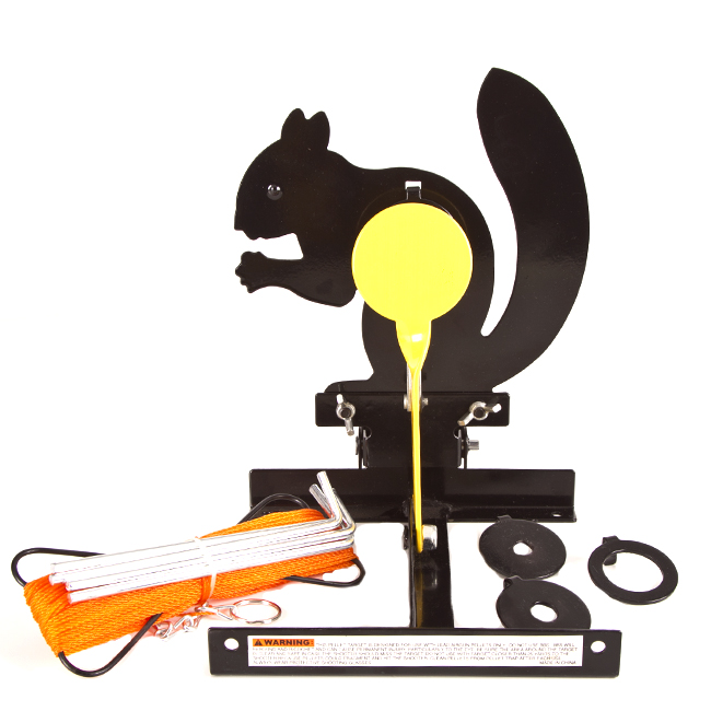 Terč určený nielen na tréning, ale aj pre športovú streľbu. Po zásahu žltého bodu celá veverička padne na zem a postaví sa pomocou lanka, ktoré je súčasťou balenia, za ktoré zatiahnete. Balenie taktiež obsahuje ukotvovacie ihlice a štyri redukcie pre zmenšovanie cieľu. Veľmi efektívna tréningová pomôcka. Priemer samotnej žltej lopatky je 6 cm, priemer otvoru priamo vo veveričke je 4 cm a priemery otvorov na zredukovanie cieľa sú 3 cm, 2 cm, 1.3 cm a 1 cm.TerčMateriál: oceľ Výrobca: Gamo