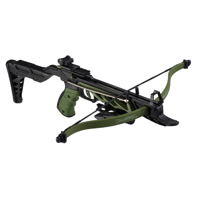 Pištoľová kuša Alligator II 80 LBS od úspešného výrobcu Man Kung s nabíjacím systémom COBRA. Odpor náťahu je 80 LBS a rýchlosť šípu v závislosti od jeho hmotnosti je do 185 fps (57 m/s). Kuša má nastaviteľné mieridlá, poistku spúšte proti nechcenému výstrelu, prídavnú taktickú rukoväť, polymérový rám, nastaviteľnú pažbu, lučisko vyrobené zo sklolaminátu a spodnú a vrchnú montážnu lištu so šírkou 22 mm, na ktoré si môžete nainštalovať rôzne taktické a športové príslušenstvo. Kuša je určená na športovú streľbu na terč do vzdialenosti 25 m a jej maximálny dostrel je cca 80 m. Systém COBRA umožňuje jednoduché a rýchle nabíjanie pomocou zalamovacej páky, ktorú predstavuje pažba. Dĺžka pažby je nastaviteľná. Celková dĺžka je od 56 do 62 cm a hmotnosť je len 1 000 g. Balenie obsahuje aj 3 ks šípov s dĺžkou 6". Teraz dostupná aj v zaujímavom zelenom prevedení.Pištoľová kuša Alligator II 80 LBS, zelenáPrídavná taktická rukov䝊ípy 6", 3 ksNávod + záručný listVýrobca: Man KungNapínacia sila: 80 lbs/36 kgRýchlosť šípu: do 185 fps/57 m/sMontáž: áno, 2 x 22 mmPoistka: ánoŠírka lučiska: 42 cmDĺžka kuše: od 56 do 62 cmMierená streľba: do 25 mMaximálny dostrel: do 80 mDĺžka šípov: 6"Materiál tela: polymérMateriál lučiska: sklolaminátVáha: 1 000 g