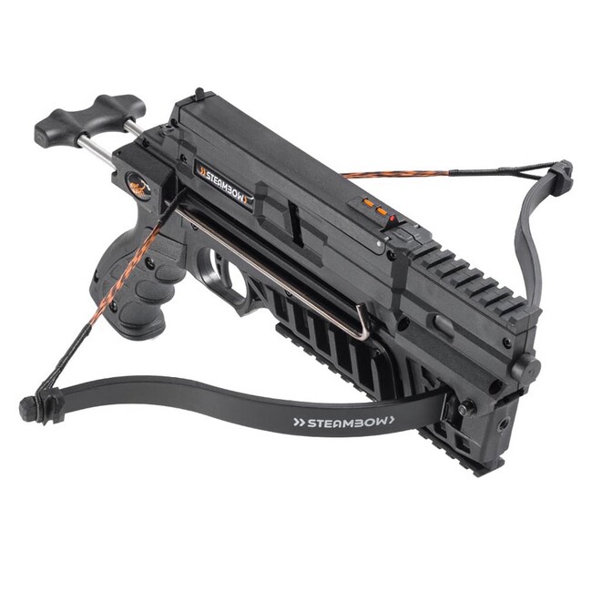 Taktická pištoľová kuša Steambow Stinger II kompakt.AR-6 Stinger II kompakt je extrémne ľahká, taktická a rýchla opakovacia kuša so 6 ranovým zásobníkom. Prekvapujúco silná to je kompaktná varianta série pištoľových kuší AR-6 Stinger II. Ultraľahká s najvyššou dávkou streľby zo všetkých opakovacích kuší na trhu. Obsahuje integrované Picatinny lišty, na ktoré môžete osadiť veľké množstvo príslušenstva, napr. od Steambowu laser, taktické svietidlo, prednú rukoväť a iné.Kuša je vyrobená z vysoko kvalitného, ľahkého a nárazu vzdorného polyméru (UV – rezistentný). Je veľmi odolný a extrémne spoľahlivý. Všetky časti kuše AR-6 Stinger II kompakt sú navrhnuté pre maximálnu spoľahlivosť a dlhú životnosť. S hmotnosťou pod 1 kg je AR-6 Stinger II kompakt najľahšou taktickou kušou na trhu.Efektívny zásah je cca do 30 metrov. Vďaka kompletnému redizajnu napínacieho mechanizmu je kuša neuveriteľne rýchla, integrované optické vlákna mieridla poskytujú extrémne rýchle mierenie. To umožňuje extrémne rýchlu streľbu. Napínanie ramien je rýchle a jednoduché. Napínacie madlo jednoducho vysuniete a pred výstrelom ho musíte zasunúť na východziu pozíciu.Menšiu náťahovú silu 35 lbs posúva nový typ sklo – karbónových ramien o úroveň vyššie a v porovnaní s bežnými ramenami iných kuší Stinger II ponúka viac ako 50 % dodatočnej sily. To znamená menej práce a viac výkonu !Výkon kuše je 150 fps – 46 m/s pri použití originál tréningových Steambow šípov (sú ťažšie 142 gr). Pri bežných ľahších pištoľových šípoch (cca 103 gr) je výkon do 200 fps.Sila náťahu je 35 lbs. Dĺžka kuše je 55.6 cm a jej výška 21.9 cm. Šírka je 44.5 cm. Hmotnosť kuše bez šípov je neuveriteľných 950 gramov. Nová muška z optického vlákna uľahčuje a zrýchľuje mierenie. V zásobníku je otvor na originál laserové mieridlá od Steambow. (Laser nie je súčasťou balenia.) Nájdete ho v našej ponuke pod kódom produktu PK209. Laserové mieridlá sa nastavujú na požadovanú vzdialenosť. Môžete tak používať pevné alebo laserové mieridlá. Zásobník sa otvára zatlačením zadného mieridla a má kapacitu 6 šípov. Zásobník je stavaný pre lovecké šípy s hrotmi, terčové šípy alebo šípy s hrotom bodkin. Skladovanie kuše s nabitými šípmi nie je žiaden problém, pokiaľ nie sú ramená kuše napnuté nehrozí žiadne riziko výstrelu.Pomocou rýchlonabíjača viete nabiť zásobník za pár sekúnd. Ako ďalšie plus je možné meniť ramená za výkonnejšie. Zásobník má stredový priezor ako ukazovateľ počtu šípov. Kuša nemá poistku kvôli zníženiu časového cyklu napnutia – výstrelu.Názor predajcu:Rakúsky výrobca Steambow prichádza na trh s nekonvenčnými typmi mechanických zbraní, ktoré sa vymykajú všetkým štandardom. Opakovacia kuša so 6 ranovým zásobníkom. Hybrid, je to niečo medzi pištoľou a kušou. Redizajnový napínací mechanizmu tak ešte zrýchľuje napínanie kuše. Laserové alebo pevné mieridlá si veľmi rýchlo osvojíte, laserový lúč sa dá nastreliť. Rukoväť je špeciálne pogumovaná, kuša sa nešmýka z rúk a je výborne vyvážená. Možnosť výmeny silnejšieho lučiska. Množstvo originálneho príslušenstva. Nie je to žiadna hračka! Odporúčame!Kuša pištoľová Steambow AR-6 Stinger II kompaktLučisko 35 lbsZásobník - 6 ranovýŠípy bodkin, 6 ksTetiva, 2 ksNastreľovacia tetivaNávod so záručným listomNapínacia sila: 35 lbsVýkon: 180 Fps - 55 m/sKinetická energia: 10 ft-lbMateriál: nárazu vzdorný a UV odolný polymérPicatinny lišty 22 mmZásobník - 6 ránMieridlá: pevné/ laserovéVýsuvný napínací systém s madlomDĺžka: 55.6 cmVýška: 21.9 cmŠírka: 44.5 cmHmotnosť: 0.95 kgFarba: čiernaVýrobca: Steambow
