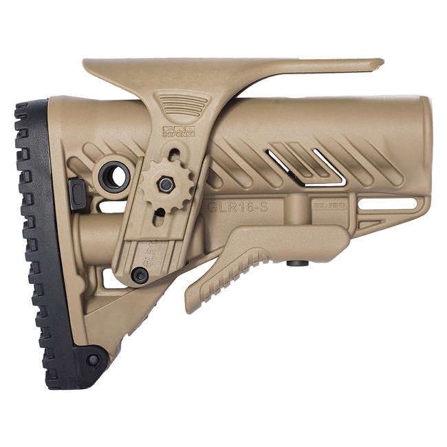 Samostatná výsuvná pažba s lícnicou (GLR-16S) pre pušky M16 / M4 / AR-15 / M4 / SA 58. Pažba má gumovú botku, úložný priestor pre monočlánky a drážky pre popruh. Pieskové farebné prevedenie.Pažba GRL-16 s lícnicou, piesková, 1 ksVýrobca: FAB DEFENSEMateriál: polymérFarba: pieskováHmotnosť: 350 g
