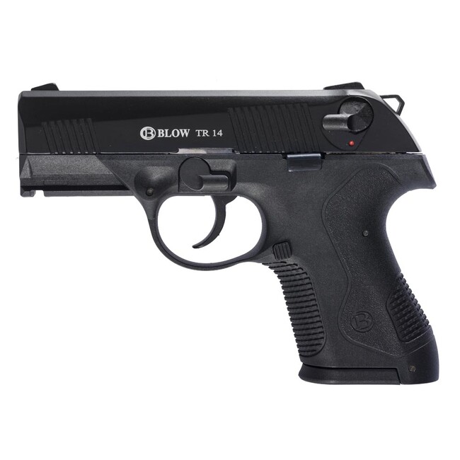 Plynová samonabíjacia pištoľ Blow mod. TR 14 v kal. 9 mm P.A. od tureckého výrobcu plynových zbraní - BLOW. Táto pištoľ vyniká kvalitným spracovaním, telom vyrobeným z odolných plastov a odľahčeným záverom z kovovej zliatiny. Zbraň je samozrejme vybavená poistkou proti nechcenému výstrelu. Kapacita zásobníka je až 14 nábojov. Súčasťou balenia je aj nadstavec pre vystreľovanie signálneho streliva (svetlíc). Do zbrane možno nabiť klasické poplašné (akustické) náboje alebo slzotvorné náboje (OC, CS, CN). Slzotvorné náboje majú dosah cca 3 až 5 metrov. Model TR 14 sa nápadne podobá na taliansku pištoľ Beretta mod. PX-4.Plynová pištol Blow mod. TR 14Nástavec na odpaľovanie pyrotechnikyPlastový kufríkNávodZáručný listVýrobca: BLOWKaliber: 9 mm P.A.K.Kapacita zásobníka: 14 + 1Výška: 125 mmDĺžka: 177 mmŠírka 34 mmHmotnosť: 780 g