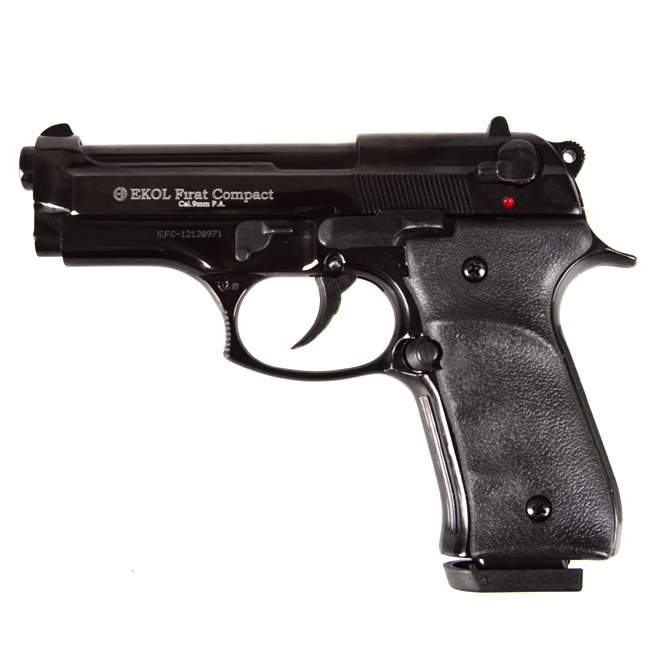 Ide o menšie prevedenie Ekol Firat Magnum model 92. Ak je pre Vás zbraň veľkosti Beretty nevhodná, a nechcete ani nič miniatúrneho tak tento typ strednej veľkosti pištole je to pravé. Zbraň je spoľahlivá, bez výrobných nedostatkov a chýb. Plastové pažby sú efektívne tvarované na prsty pre lepšie uchopenie a držanie. Ide o veľmi kvalitné prevedenie repliky Beretta model 92.Klasická, obranná plynová (expanzná) pištoľ podľa modelu Beretta vz. 92, má celokovové telo a poistku na zaistenie zbrane.Pre svoju kompaktnosť a kompatibilitu s pyrotechnickým nadstavcom ju možno využiť na rôzne oslavy (Silvester, narodeniny, firemné udalosti, jubileá, svadby). Zbraň má nadstavec na strieľanie pyrotechnických rakiet.Pištoľ je veľmi spoľahlivá pri správnom používaní (kvalitné strelivo ,dostatočné čistenie zbrane). Obľúbený model, vhodný na sebaobranu ako aj na široké využitie športových, rekreačných, oslavných podujatí (strieľanie pyrotechnických svetlíc). Ekol patrí medzi kvalitných výrobcov. Zbraň patrí k obľúbeným, väčším modelom plynových (expanzných) pištolí.Pri použití na sebaobranu je reálna účinnosť plynových či korenistých nábojov na vzdialenosť do 4 m.Plynové zbrane značky EKOL majú označenie C.I.P. a sú na nich vyrazené české alebo slovenské testovacie značky.Plynová pištoľ Ekol Firat Compact, čiernaČierny plastový kufríkZásobníkNadstavec na pyrotechnikuNávodZáručný listPlynová zbraňKaliber : 9 mmKvalitné celokovové prevedenieKapacita : 15 + 1Dĺžka : 185 mmVýška : 137 mmVáha : 1100 g