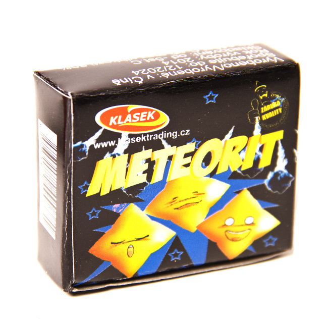 Praskajúce farebné granule.Pyrotechnika Meteorit, 12 ksBalenie v krabičke obsahuje: 12 ksObchodné balenie obsahuje: 40 krabičiekKartón obsahuje: 10 baleníTrieda nebezpečenstva: F1