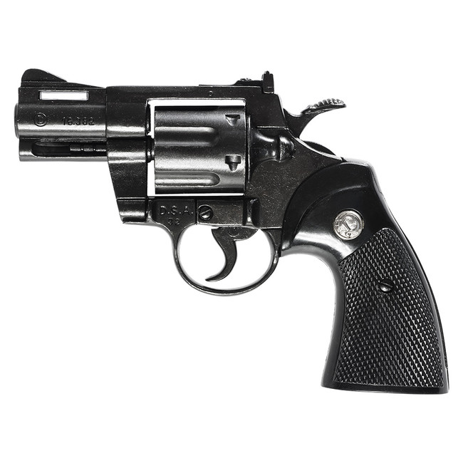 Nefunkčná replika svetoznámeho revolveru model Python kal. 357 Magnum. Vyrábala ho americká spoločnosť COLT v meste Hartford v rokoch 1955 až 2005. V U.S.A. našiel uplatnenie v malej miere aj v armáde aj v polícii. Bol obľúbený najmä vďaka skvelej presnosti a jemnej spúšti. Vyrábal sa s hlavňami dlhými 2.5´´, 3´´, 4´´, 6´´ a 8´´. V tomto prípade ide o prevedenie so 2.5´´ hlavňou. Replika má pohyblivý valec a spúšťový mechanizmus. Táto replika nie je určená na streľbu so žiadnym typom a kalibrom streliva. Slúži len na dekoračné alebo zberateľské účely.Replika revolveru Python USA 1955, 1 ksVýrobca: DenixDĺžka: 21 cmHmotnosť: 870 g
