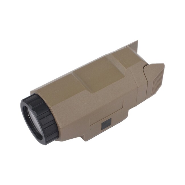 Taktické polymérové svietidlo značky WADSN model APL so svetelným tokom 200 LM. Vhodné na airsoftové a vzduchové pušky, samopaly či pištole. Spínače na nachádzajú na ľavej aj pravej strane, je teda použiteľné pre ľavákov i pravákov. Odolné proti vlhkosti. Inštaľuje sa na montážne lišty so šírkou 22 mm. Napájané je batériou typ CR123A. Rozmery sú 80 x 30 x 35 mm a hmotnosť je len 60 g. Svietidlo je dodávané v plastovom kufríku. Vojenské farebné prevedenie tan.Taktické svietidlo WADSN APL 200 LM, tanPlastový kufríkVýrobca: WADSNSvetelený tok: 200 LMRozmery: 80 x 30 x 35 mmHmotnosť: 60 gMateriál: polymérMontáž: 22 mmNapájanie: 1 x CR123AFarba svetla: studená biela