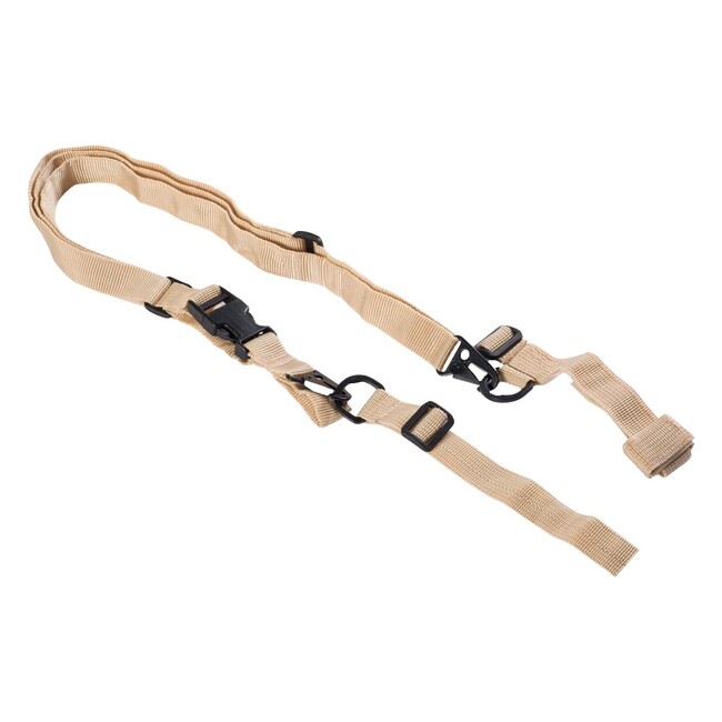 Trojbodový taktický nastaviteľný popruh značky Royal, ktorý je vybavený dvomi kovovými sponami a dvoma ďalšími spôsobmi uchytenia k zbrani. Vojenské farebné prevedenie TAN.Trojbodový taktický popruh Royal, tanVýrobca: RoyalMateriál: nylonFarba: tan