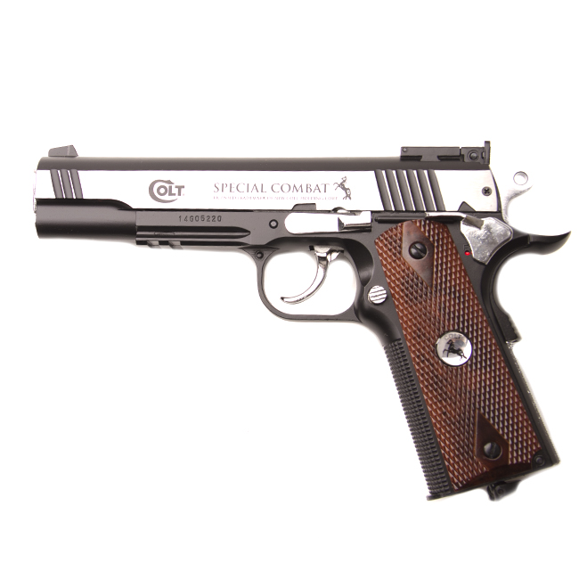 Vzduchová pištoľ v štýlovom dizajne od nemeckej spoločnosti Umarex. Model Colt Special Combat Classic kal. 4.5 mm/.177 je replikou známej americkej pištole COLT 1911. Je poháňaný bombičkou s obsahom 12 g CO2, ktorá sa vkladá spolu s oceľovými brokmi do spoločného zásobníka. Kapacita zásobníka je 19 oceľových brokov. Nechýba ani poistka proti nechcenému výstrelu a spodná montážna lišta so šírkou 22 mm, na ktorú je možné nainštalovať napr. svietidlo alebo laserový zameriavač. Vďaka kovovej konštrukcii má pištoľ realistickú hmotnosť až 928 g. Energia strely je do 3.00 J a úsťová rýchlosť je do 125 m/s. Celková dĺžka je 218 mm. Systém spúšte je DA (Double Action) a režim streľby je semi-auto. Elegantné farebné prevedenie. Vzduchová pištoľ Colt Special Combat Classic kal. 4.5 mmZásobník, 1 ksNávod + záručný listVýrobca: UmarexKaliber: 4.5 mm/.177Strelivo: oceľové guľôčkySystém spúšte: DABlow-Back: nieRežim streľby: semi-autoPrincíp fungovania: CO2Celková dĺžka: 218 mmDĺžka hlavne: 122 mmHmotnosť: 928 gÚsťová rýchlosť: do 125 m/sEnergia strely: do 3.00 JKapacita zásobníka: 19Poistka: áno, manuálna